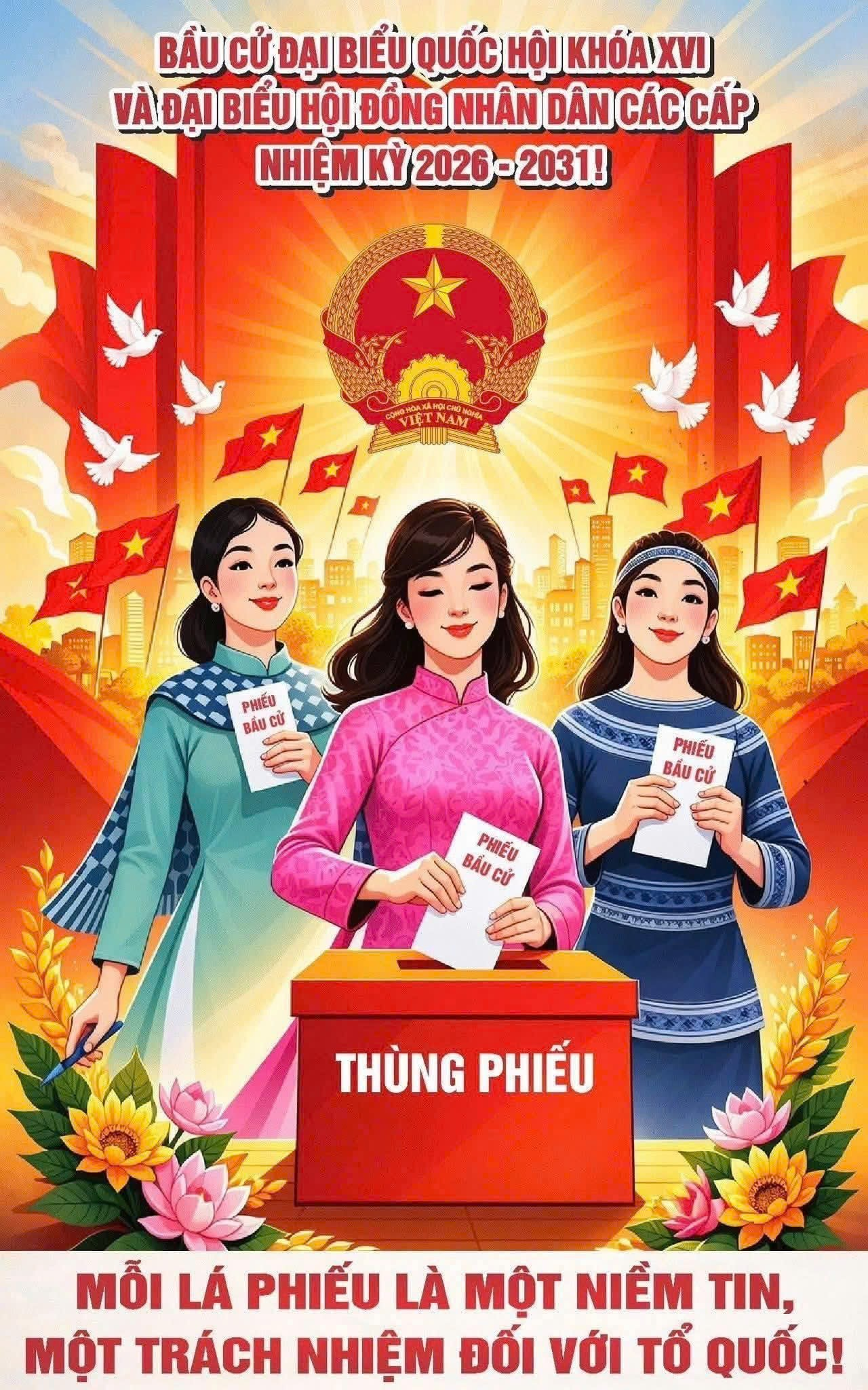 Cuộc bầu cử đại biểu Quốc hội khoá XVI và đại biểu Hội đồng nhân dân các cấp nhiệm kỳ 2026 - 2031 được tổ chức cùng một ngày trên phạm vi cả nước vào Chủ nhật, ngày 15 tháng 3 năm 2026 trong bối cảnh công cuộc đổi mới ở nước ta sau 40 năm đã đạt được những thành tựu to lớn, có ý nghĩa lịch sử trên mọi lĩnh vực đời sống xã hội.