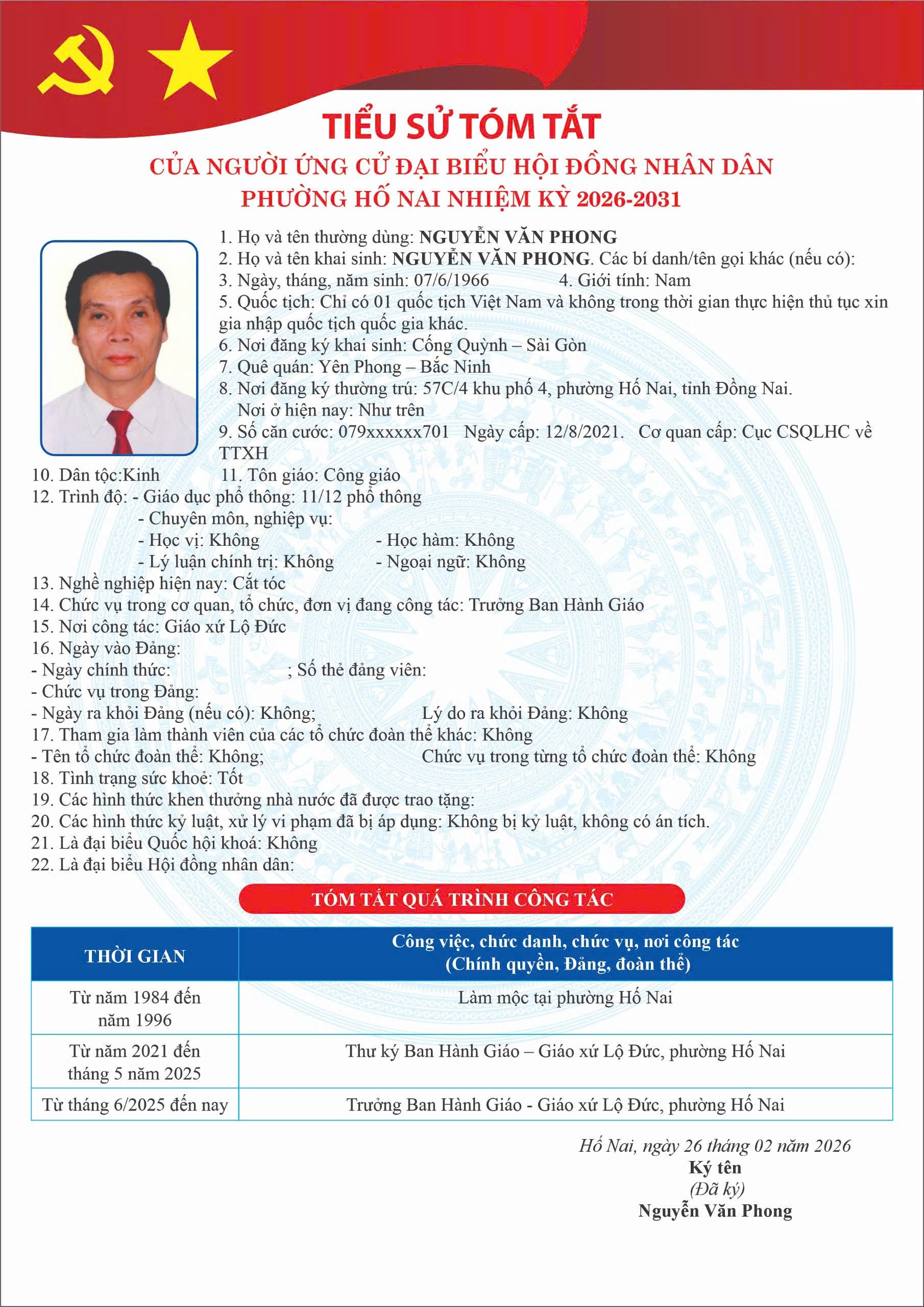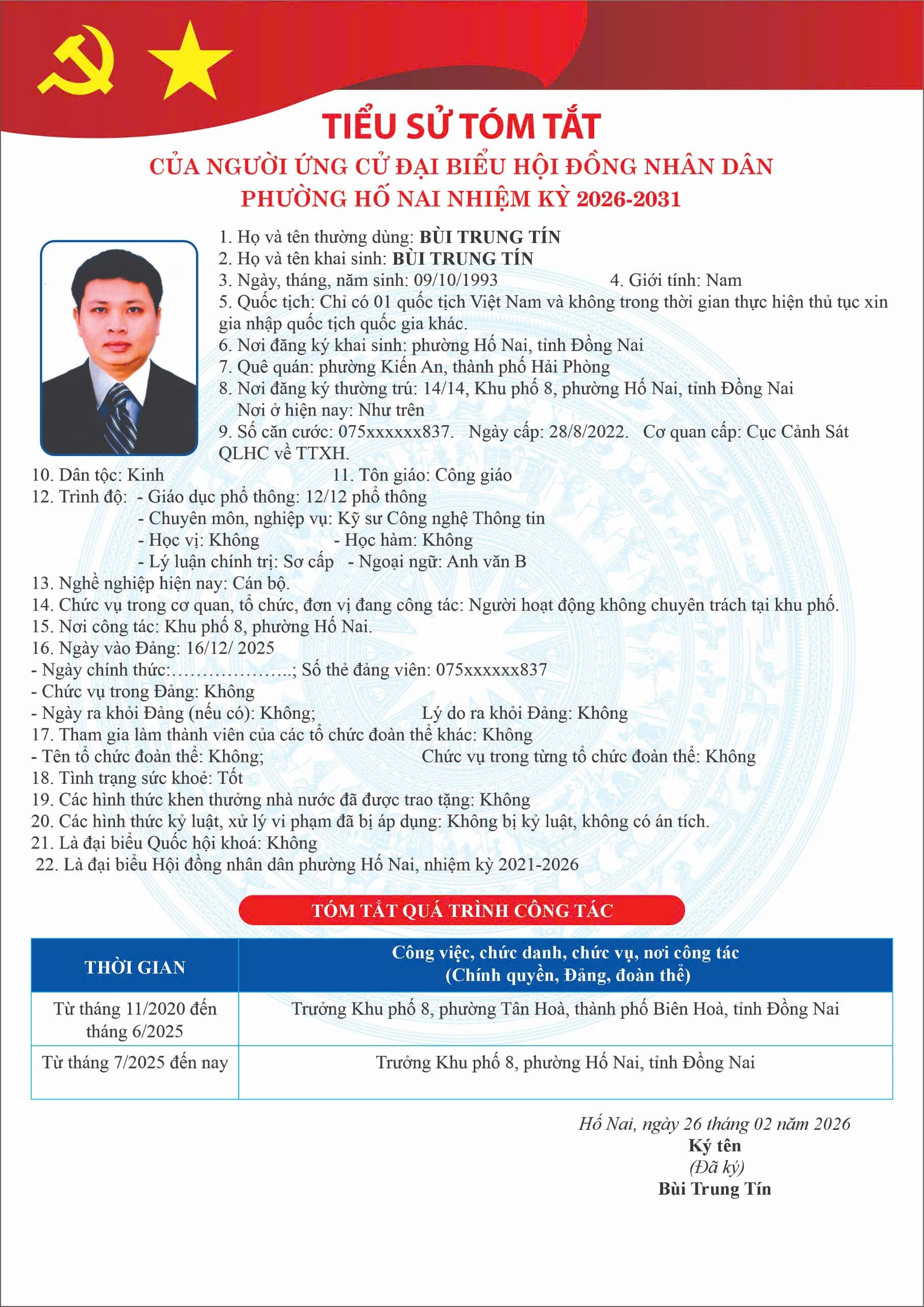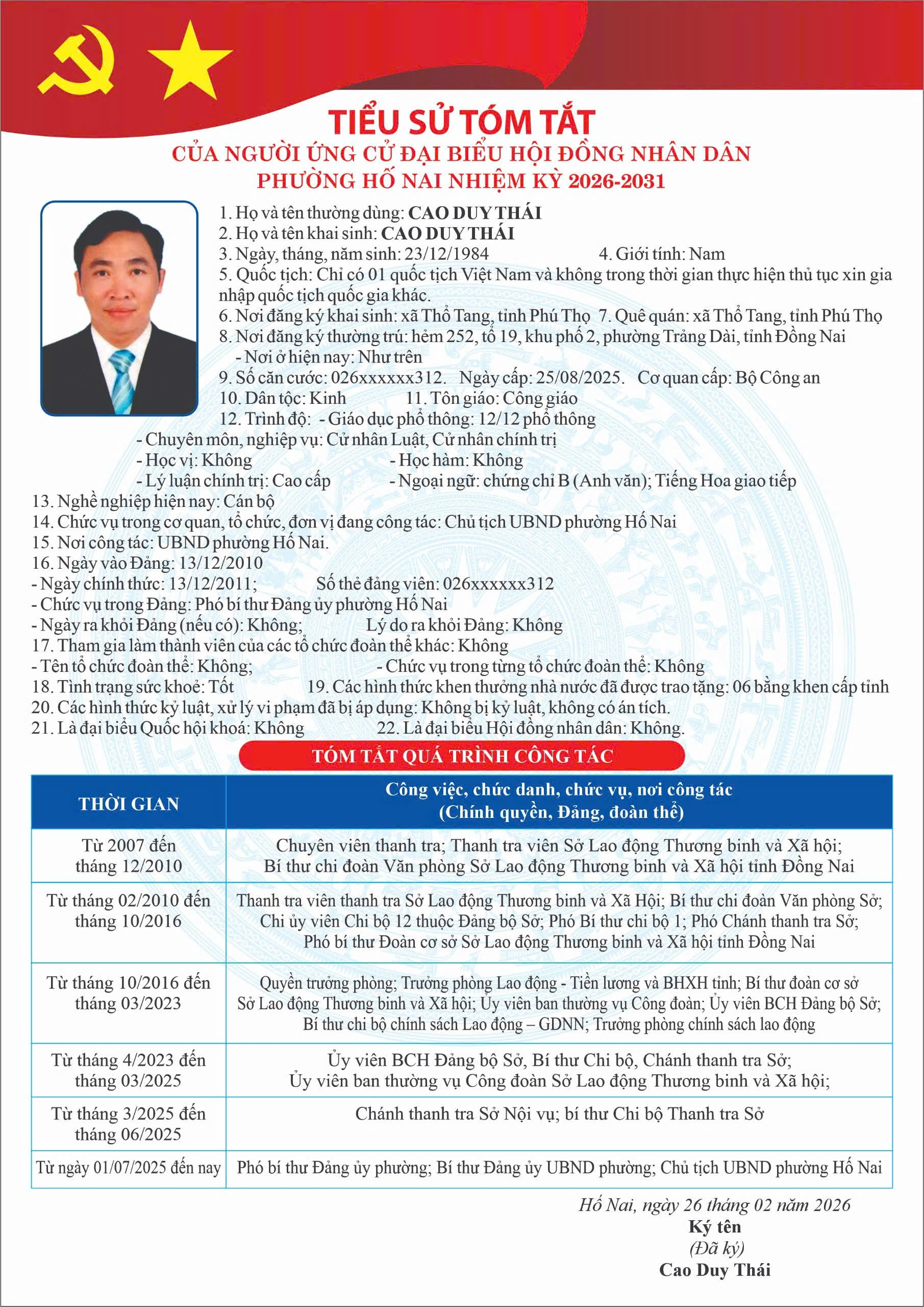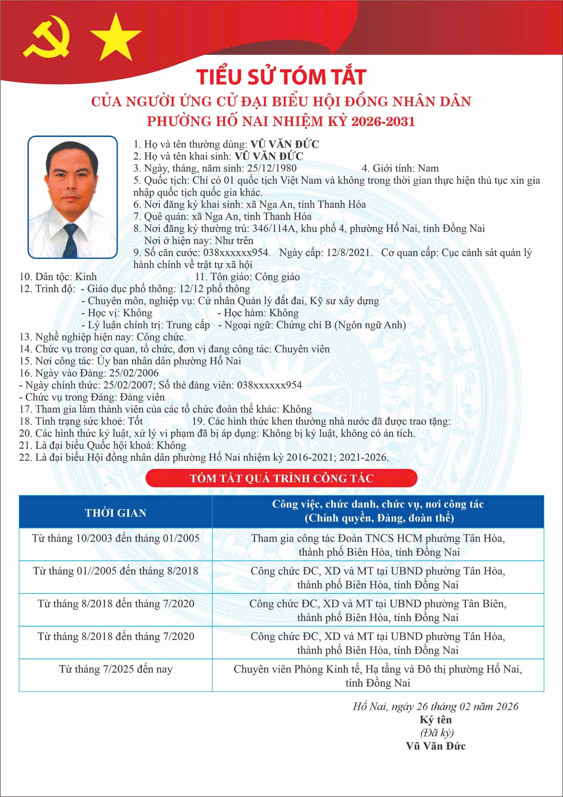 PHƯỜNG HỐ NAI CÔNG BỐ DANH SÁCH NGƯỜI ỨNG CỬ ĐẠI BIỂU HỘI ĐỒNG NHÂN DÂN NHIỆM KỲ 2026 – 2031