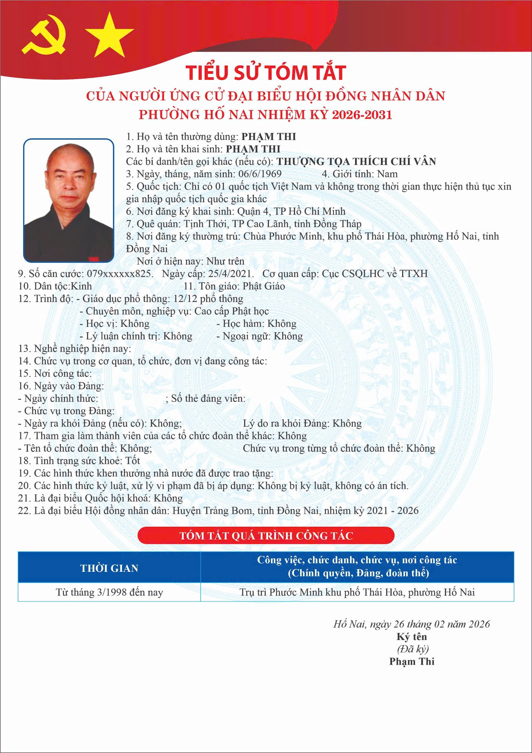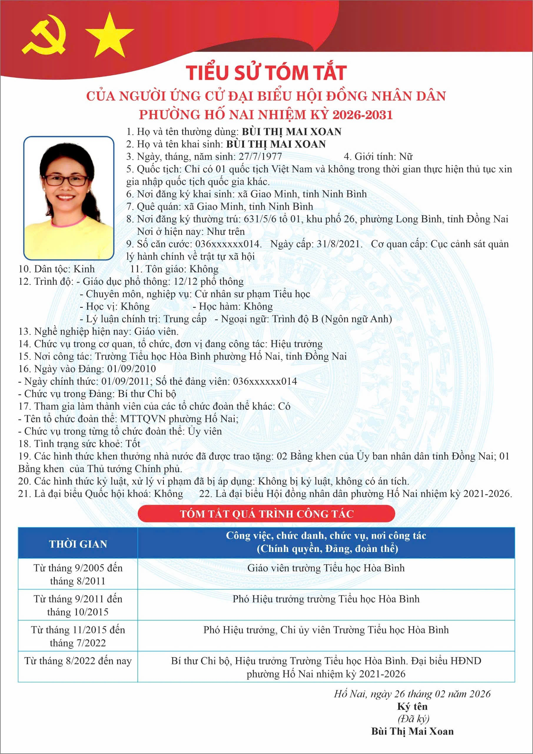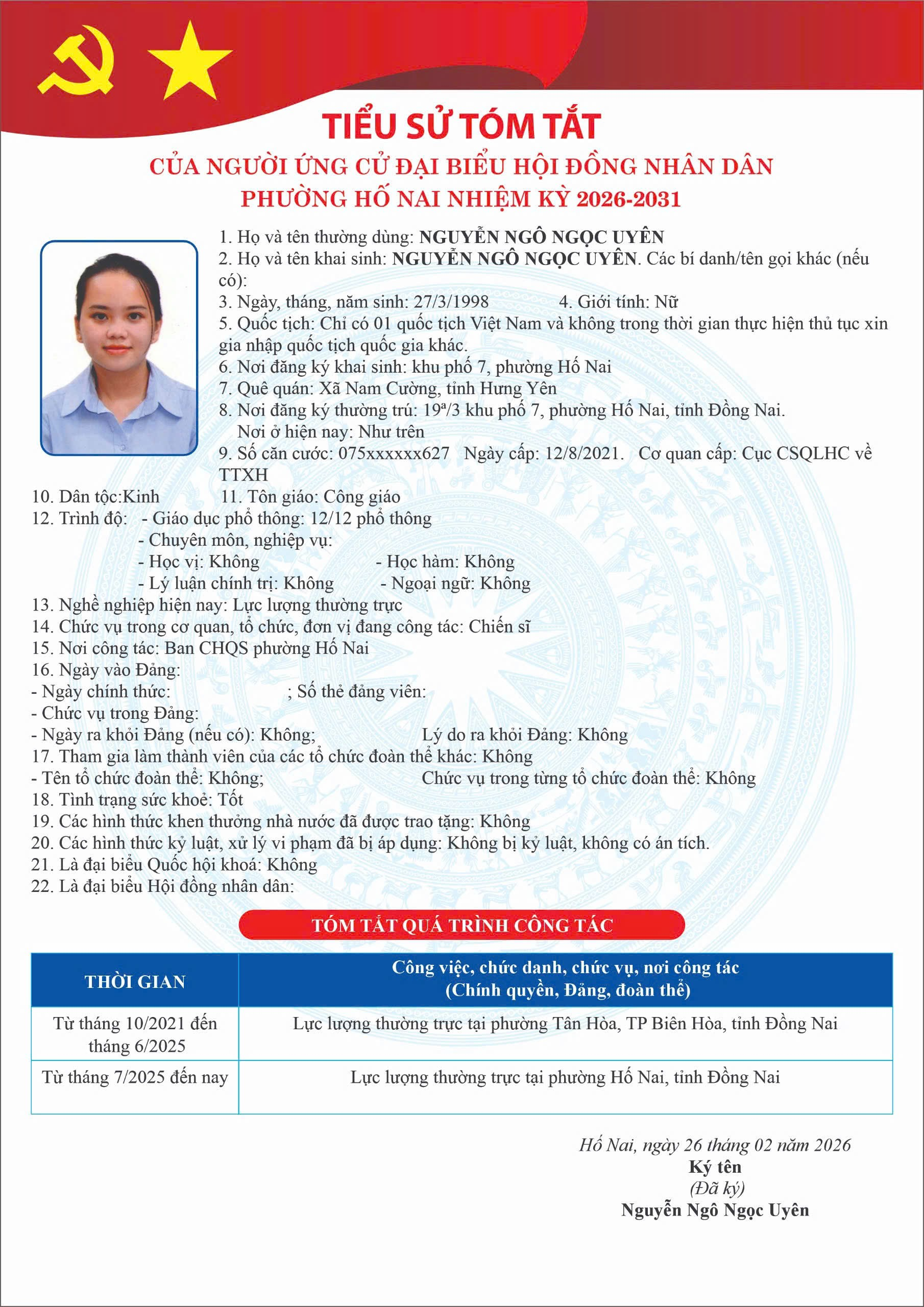 PHƯỜNG HỐ NAI CÔNG BỐ DANH SÁCH NGƯỜI ỨNG CỬ ĐẠI BIỂU HỘI ĐỒNG NHÂN DÂN NHIỆM KỲ 2026 – 2031