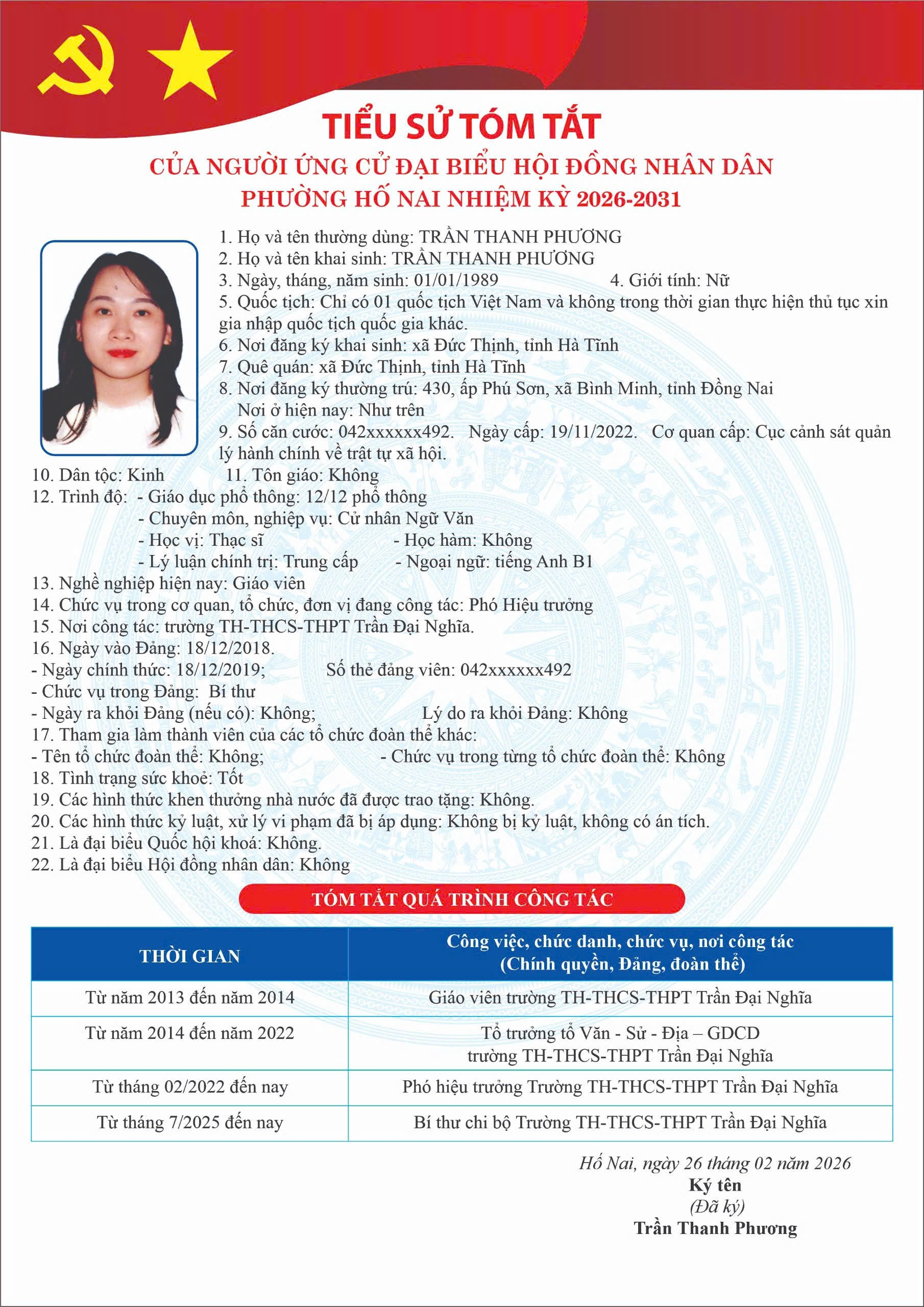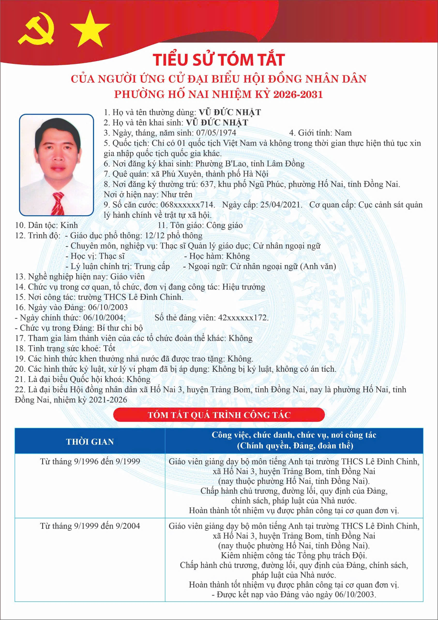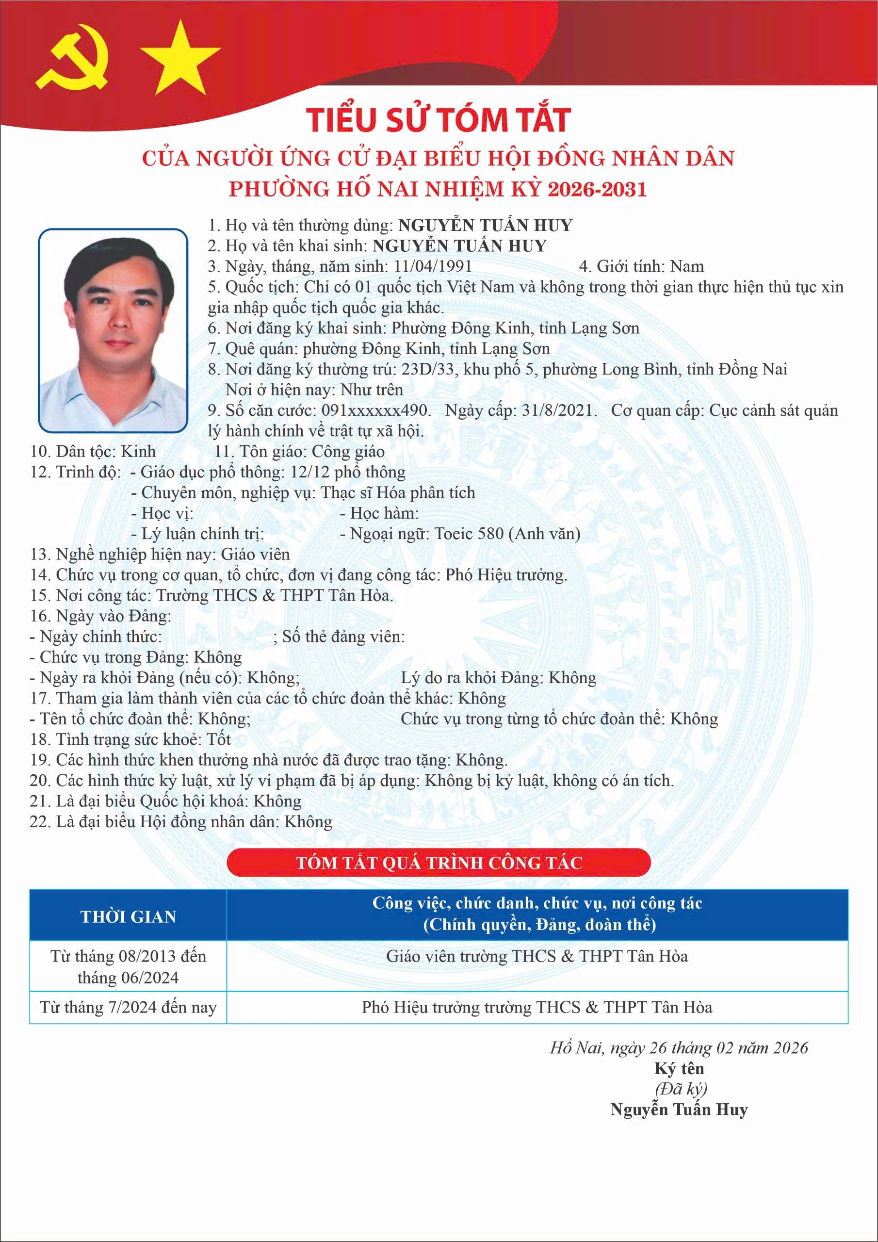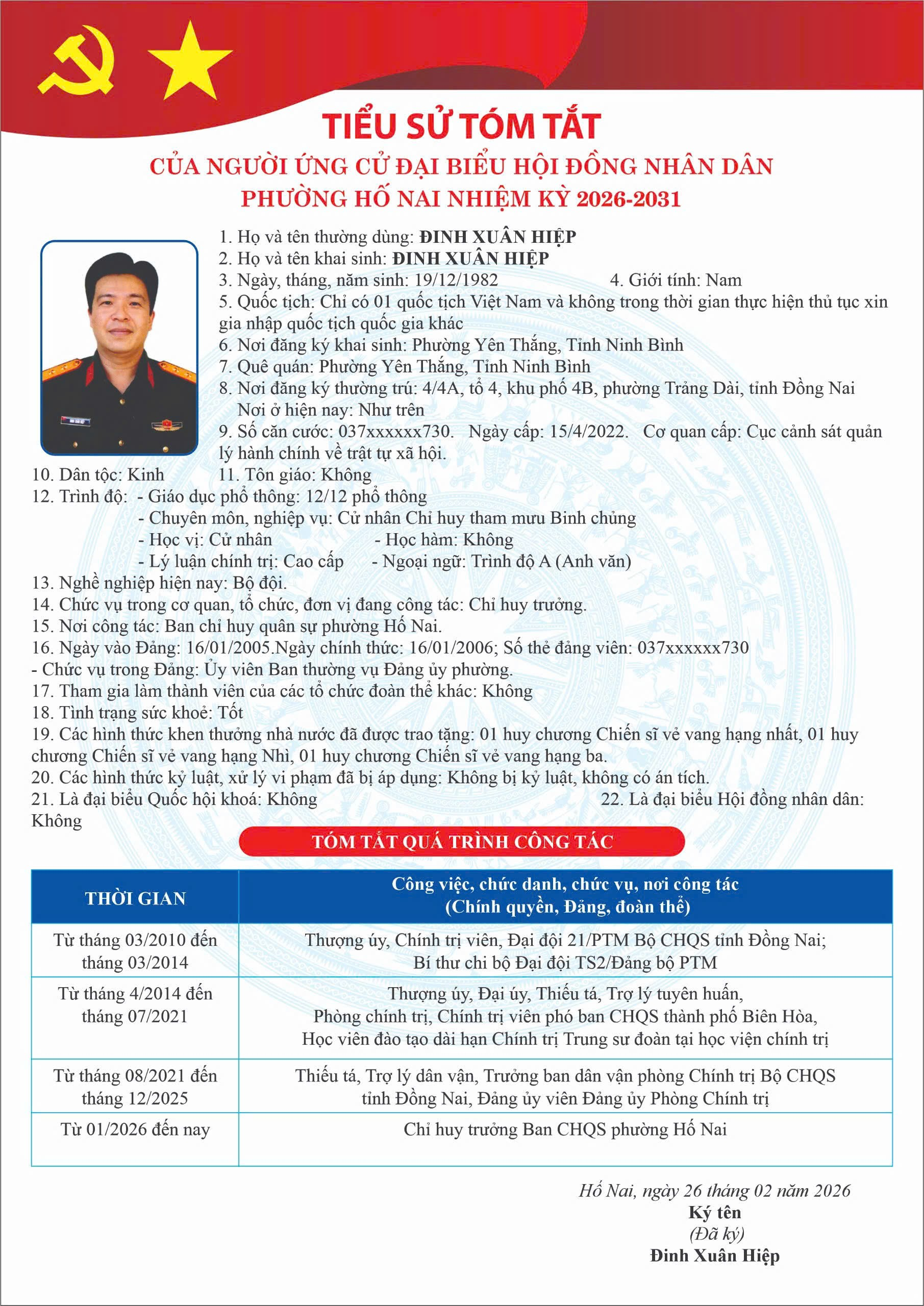 PHƯỜNG HỐ NAI CÔNG BỐ DANH SÁCH NGƯỜI ỨNG CỬ ĐẠI BIỂU HỘI ĐỒNG NHÂN DÂN NHIỆM KỲ 2026 – 2031