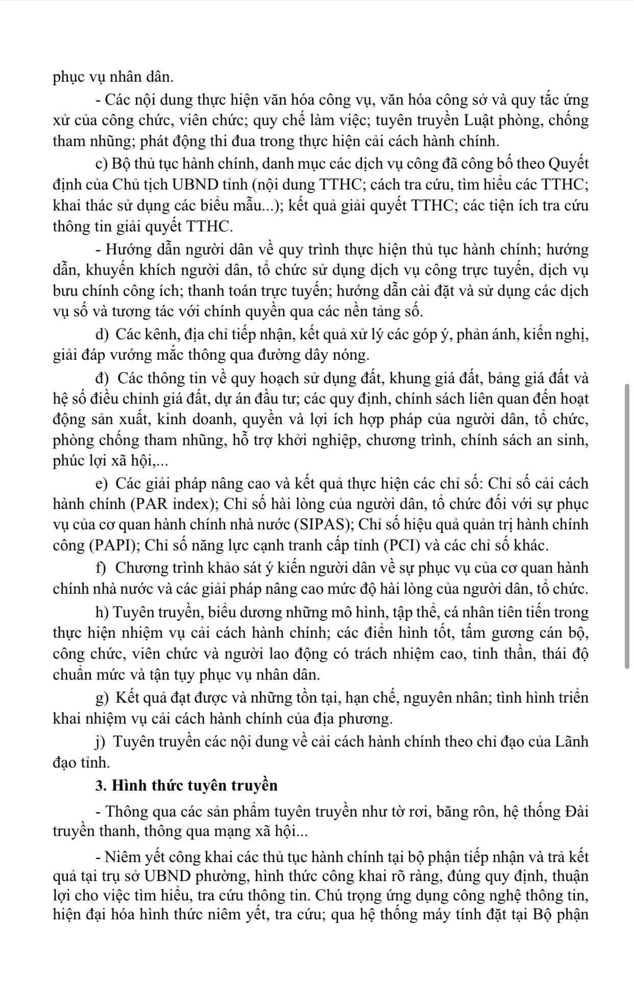 - Nâng cao mức độ tiếp cận thông tin, tăng cường sự tham gia của người dân, tổ chức trong việc triển khai công tác cải cách hành chính, tích cực sử dụng dịch vụ công trực tuyến, đóng góp ý kiến cải thiện chất lượng dịch vụ công