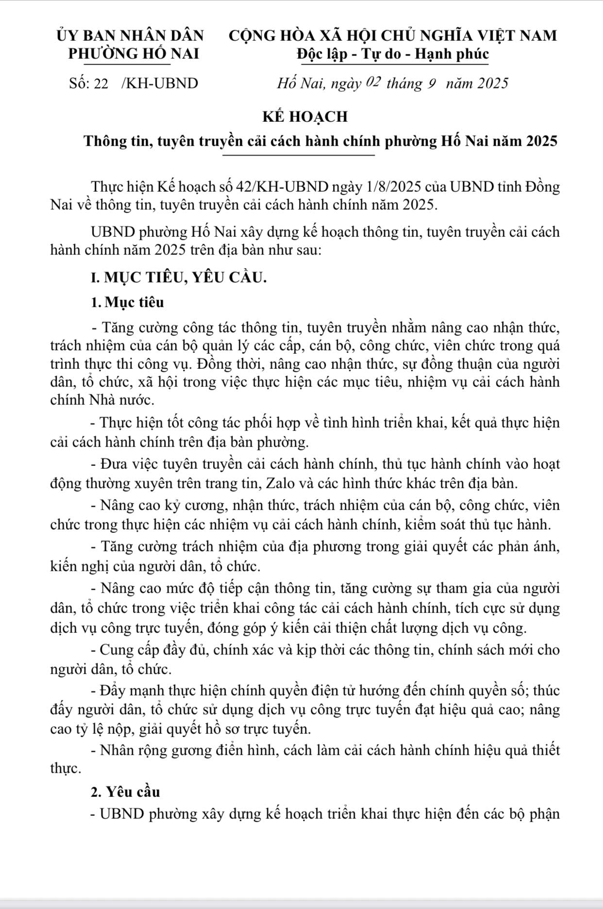 UBND phường Hố Nai xây dựng kế hoạch thông tin, tuyên truyền cải cách hành chính năm 2025 trên địa bàn như sau:
