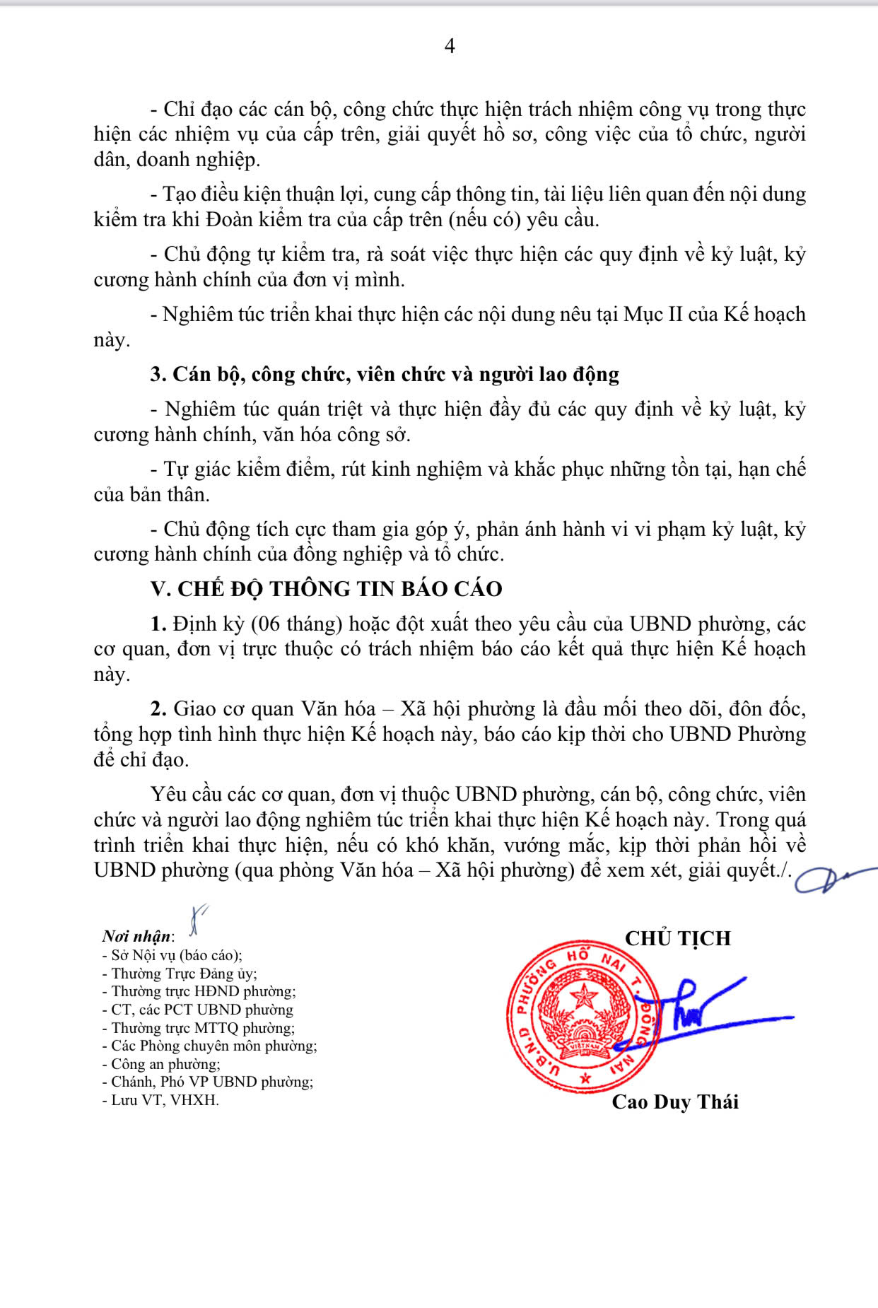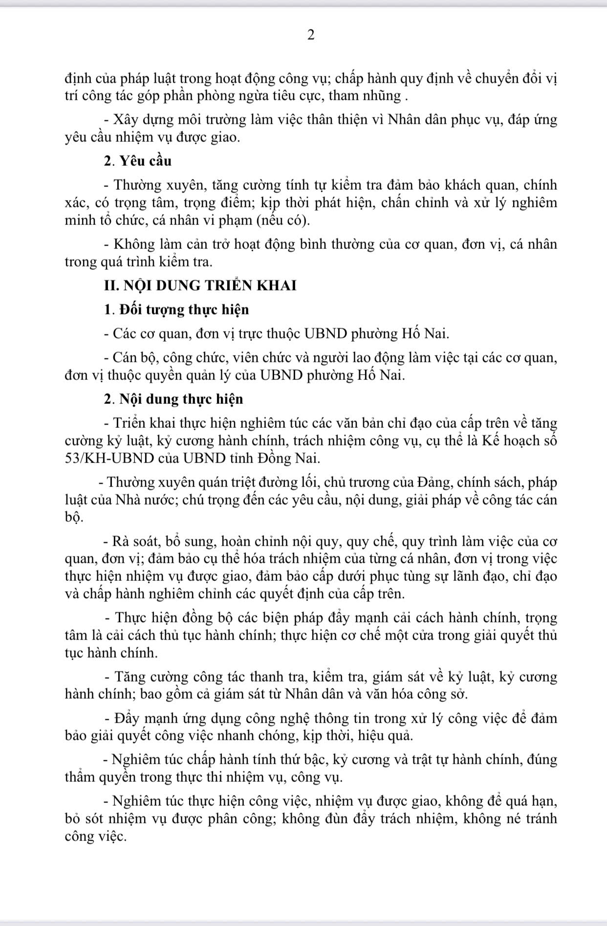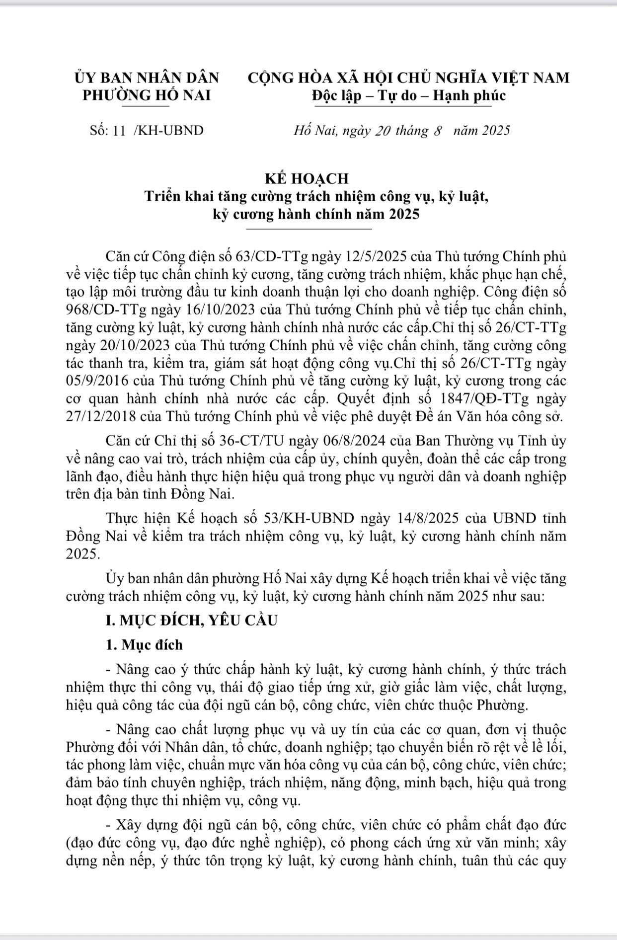Ủy ban nhân dân phường Hố Nai xây dựng Kế hoạch triển khai về việc tăng cường trách nhiệm công vụ, kỷ luật, kỷ cương hành chính năm 2025 như sau: