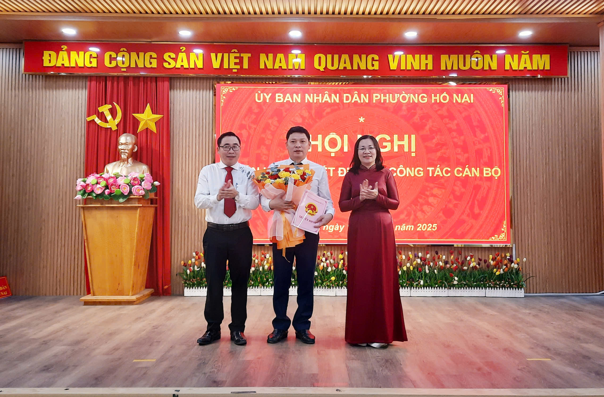 Tại Hội trường UBND phường Hố Nai Sáng Thứ Hai Vào lúc 08 giờ 30 phút Ngày 01/12/2025 đã tổ chức lễ công bố trao Quyết Định về công tác cán bộ đến việc tiếp nhận, bổ nhiệm và giao Quyền Trưởng phòng Kinh tế – Hạ tầng và đô thị phường Hố Nai.