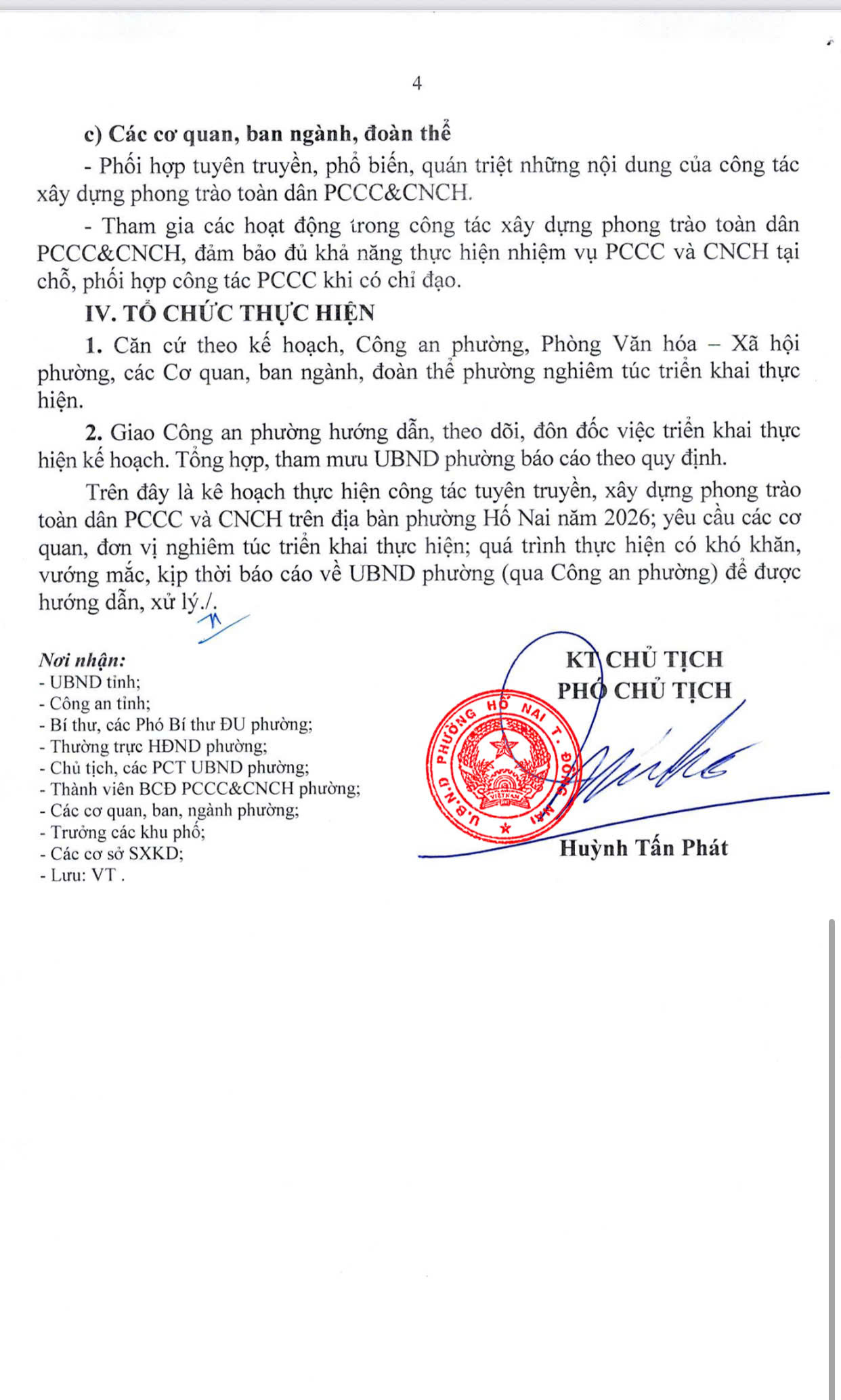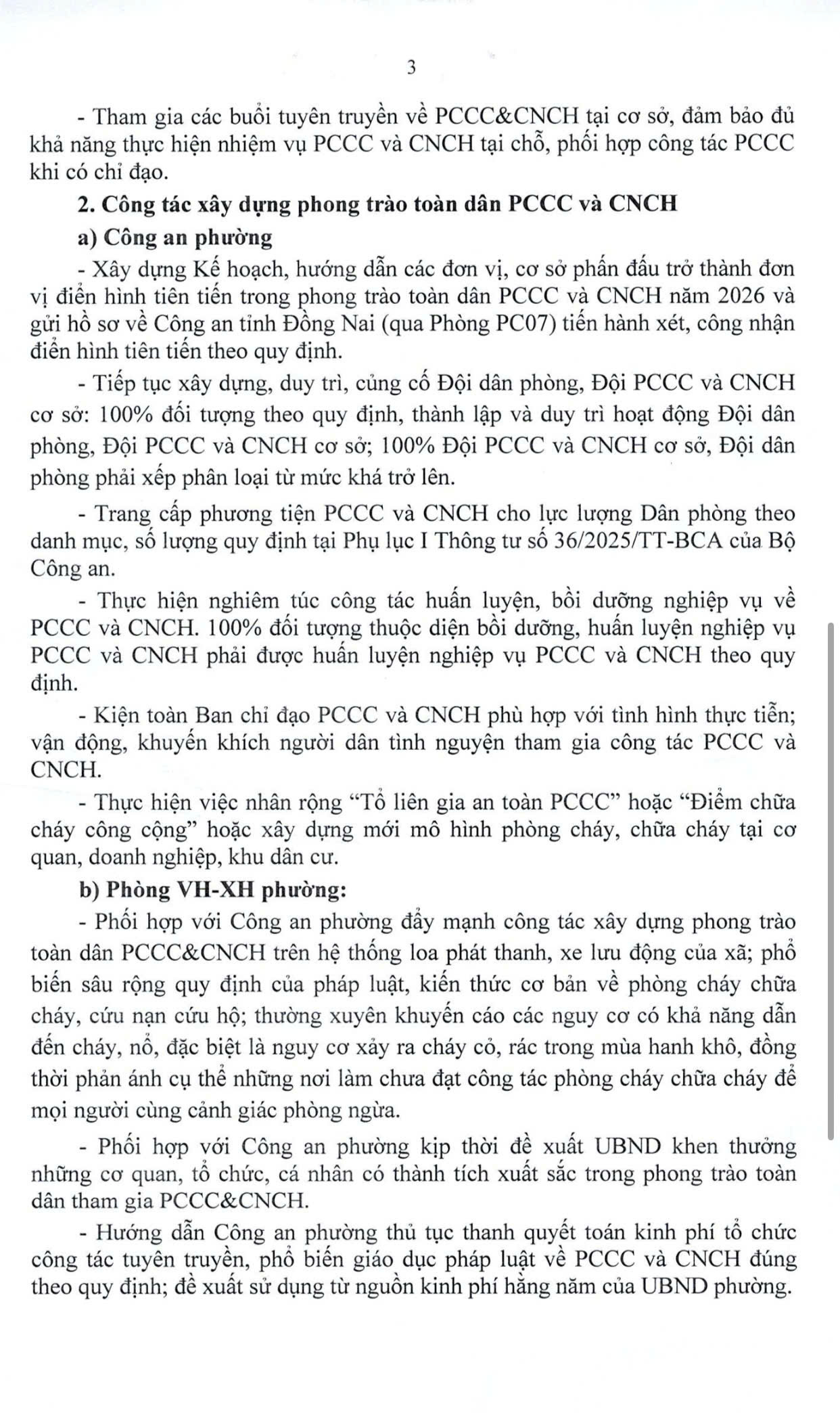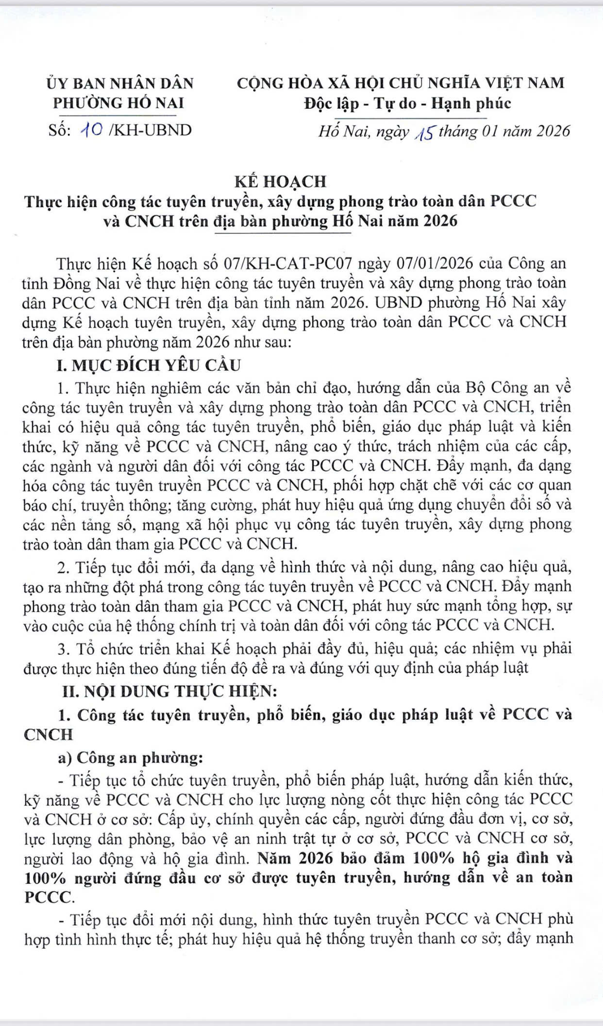 Phường Hố Nai thực hiện công tác tuyên truyền về, phổ biến, giáo dục về PCCC và CNCH trên địa bàn phường năm 2026