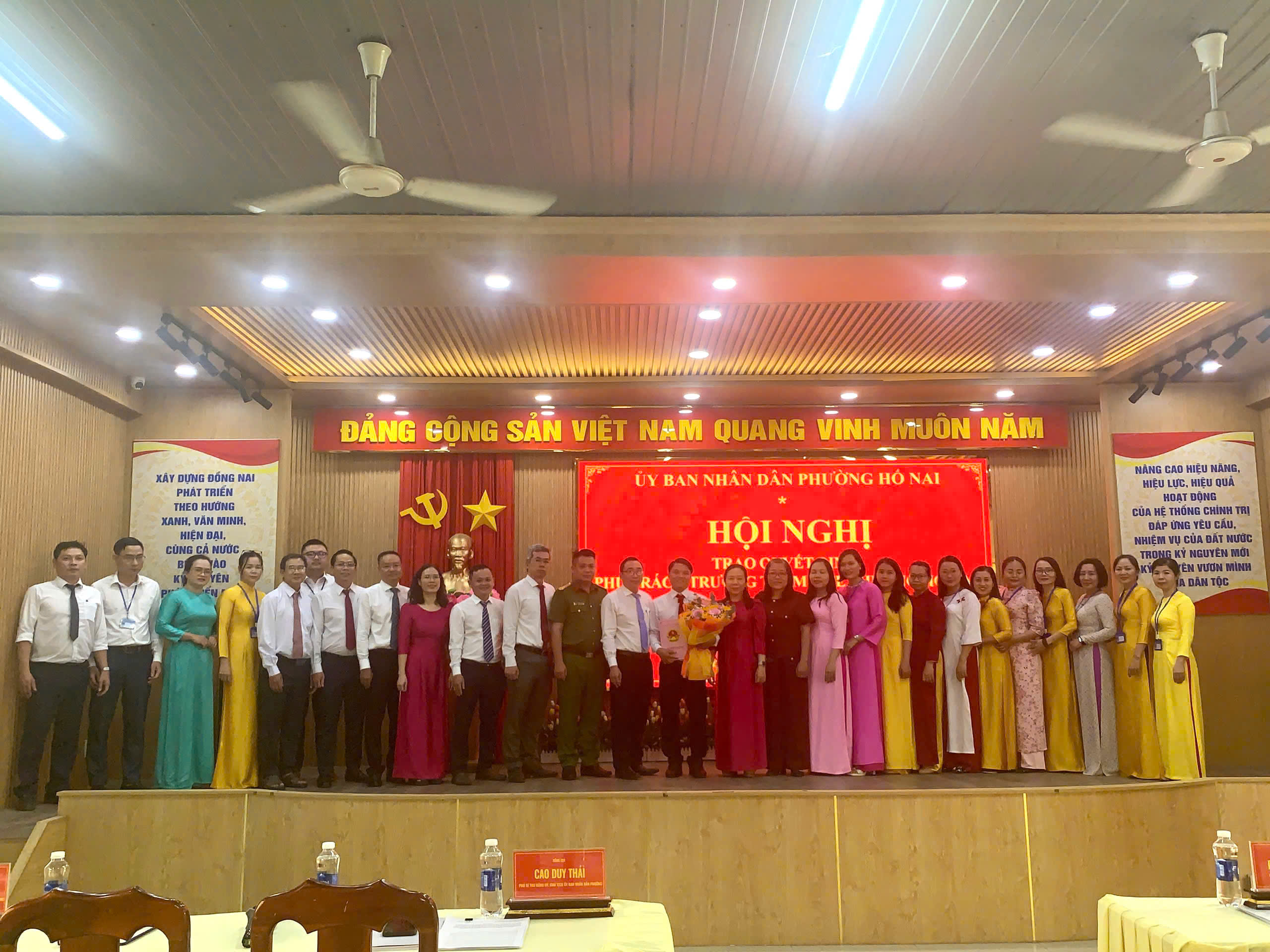 Đồng chí Cao Duy Thái – Phó Bí thư Đảng ủy phường – Chủ tịch UBND phường lên trao Quyết định tiếp nhận bổ nhiệm cho ông Hà Ngọc Hoàng - Phó Trưởng Trạm Y tế phường Hố Nai .