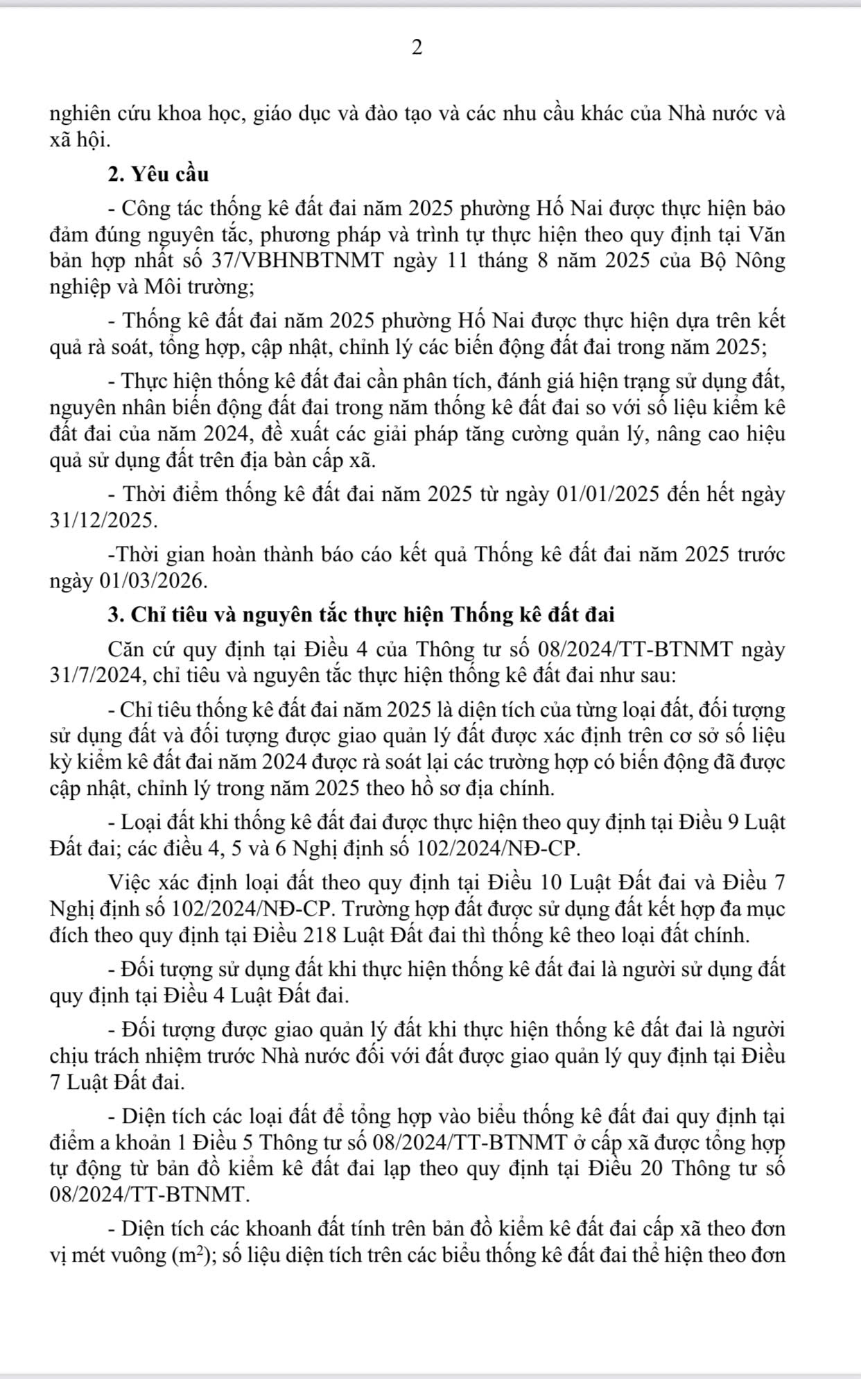 Căn cứ Văn bản số 8439/UBND-KTN ngày 28/10/2025 của UBND tỉnh Đồng Nai về việc thực hiện công tác thống kê đất đai năm 2025;